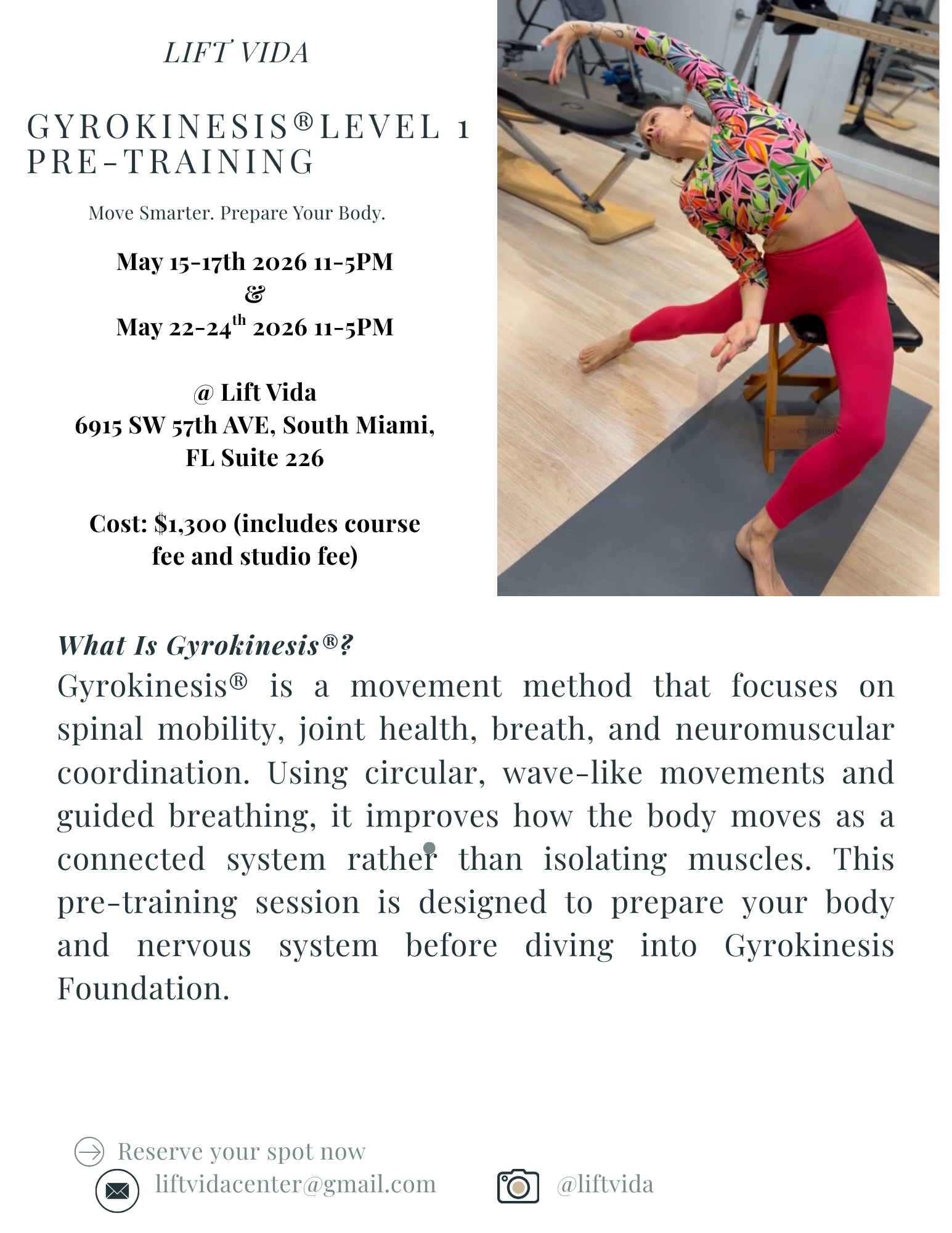 Gyrokinesis Pre-Training Opportunity